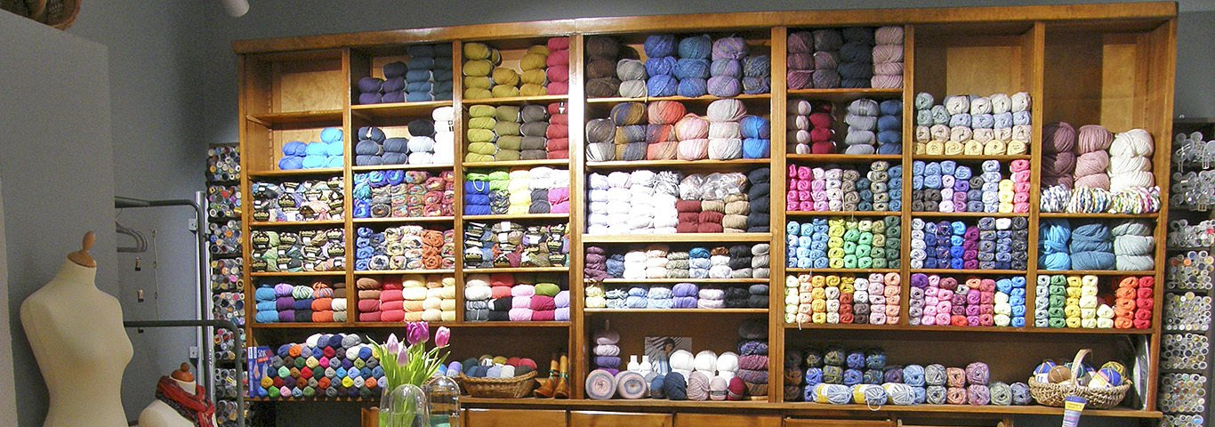 Auch andere Einrichtungsteile stammen entweder aus Familienbesitz oder wurden gebraucht erworben. Es sind sorgfältig ausgewählte Stücke, die den Charakter unseres Ladens ausmachen, für die einzigartige Atmosphäre unseres Ladengeschäfts sorgen und in besonders schöner Form moderne Garne aus den neuesten Kollektionen präsentieren.
